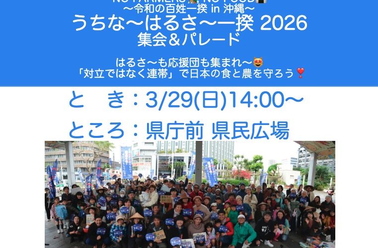 沖縄の農家は農繁期!でバタバタしてるけど、今年もやりますよ~! NO FARMERS👨🌾, NO FOOD🍙 ~令和の百姓一揆 in 沖縄~「うちな~はるさ~一揆」 3月29日(日)14:00~ 県庁前 県民広場 集会&パレード はるさ~も応援団も集まれ~日本の食と農を守ろう❣️ ⚠️この日、南城市のmonsoon kitchen店舗は臨時休業になります~🙇 ~実行委員会よりメッセージ~ 私たち […]